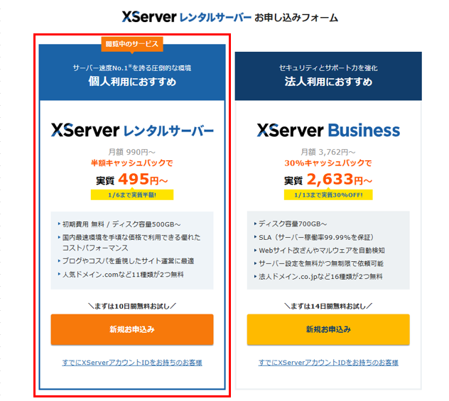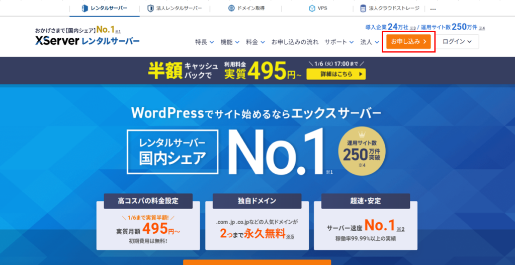 おすすめしてもらった”XServer”と検索して、実際にサイトを開いてみます。