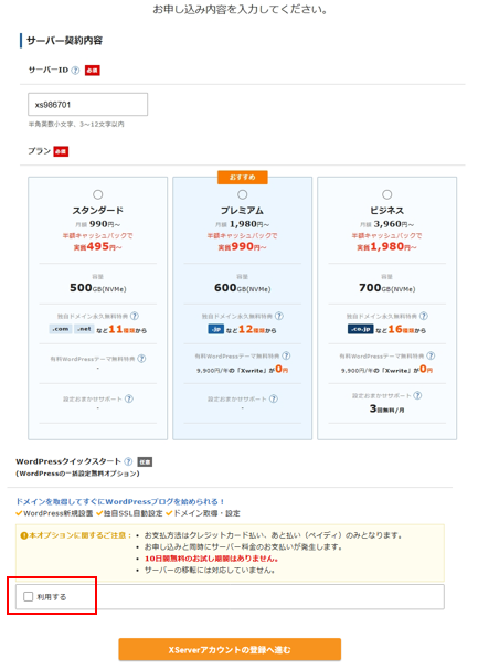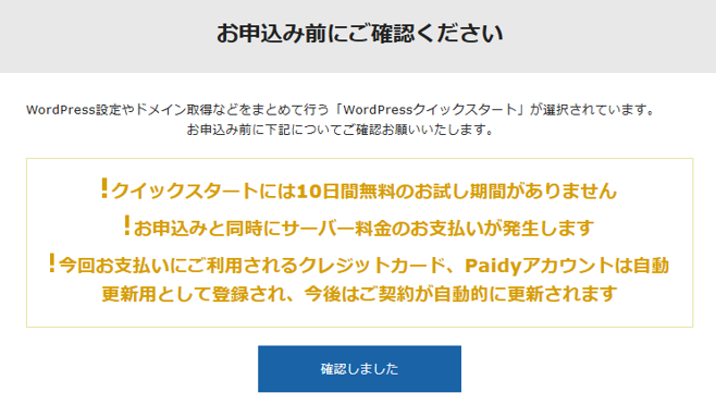 昨日ChatGPTが言っていた「WordPressクイックスタート」を利用するにチェックする。