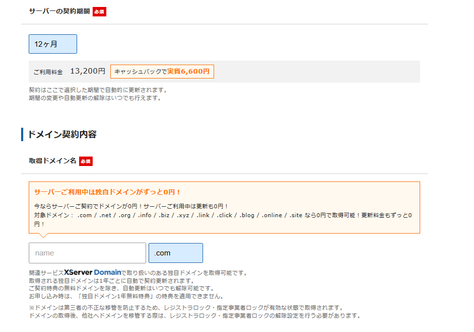 キャンペーンの適用が12ヶ月からしか適用されないみたいだったので、12ヶ月を選択。